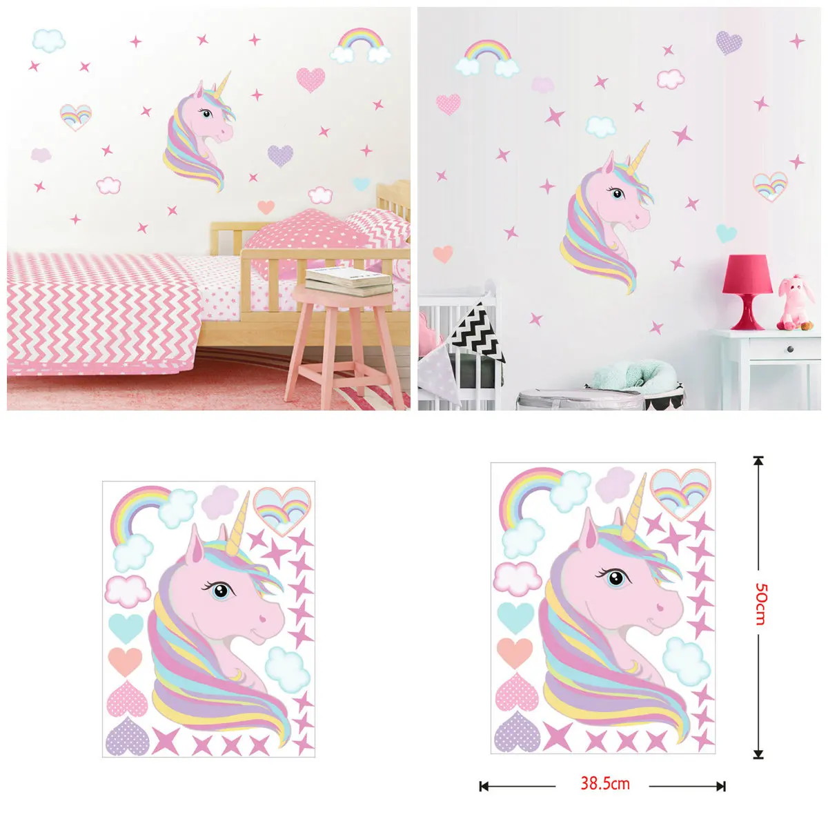 Dekorasi Rumah untuk Anak Perempuan Anak anak Kamar Diy Poster Wallpaper Unicorn Sihir Stiker Dinding Warna warni Hewan Kuda Stiker Dinding Bintang|Wall Stickers| - AliExpress