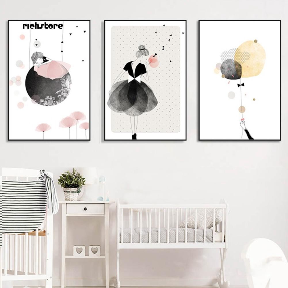 Poster Lukisan Kanvas Tanpa Bingkai Gambar Anak Perempuan Nordic untuk Dekorasi Kamar Anak | Shopee Indonesia