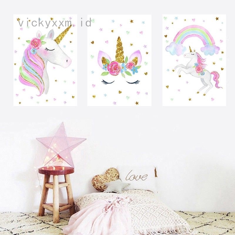 Poster Lukisan Kanvas Gambar Unicorn Pelangi Lucu untuk Dekorasi Dinding Kamar Anak | Shopee Indonesia