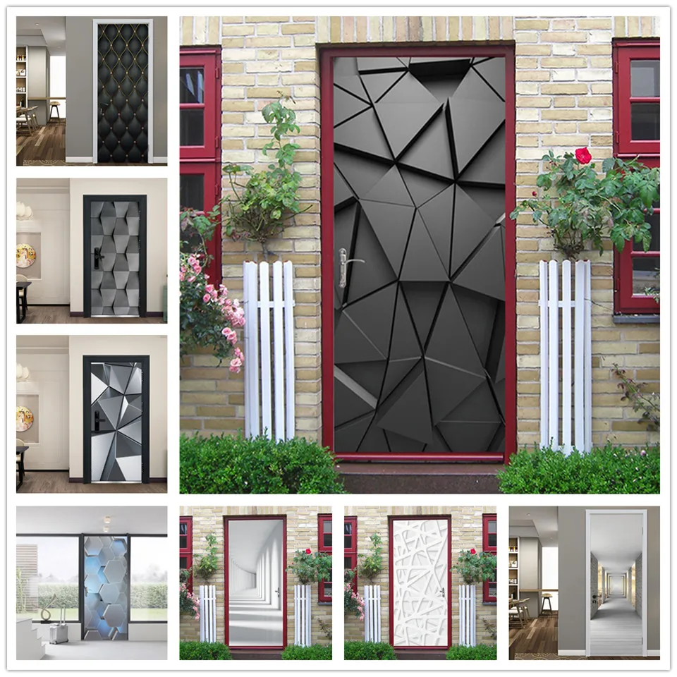 Hitam Geometris Pintu Stiker Stick Wallpaper Tahan Air Renovasi Poster Kayu Decals Rumah Desain |Pintu Stiker| - AliExpress