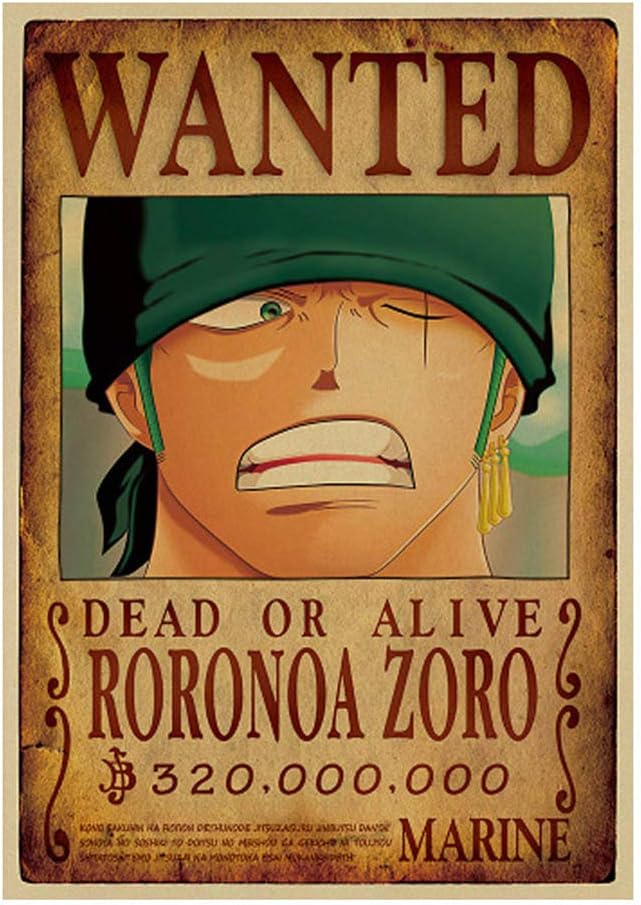 Amazon.com: tealn One Piece Wanted Posters Zoro 0.32 Billion Art …