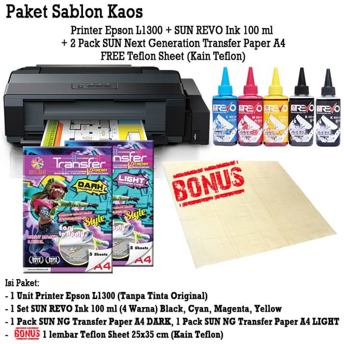 Paket Sablon Printer Epson L1300 Transfer Paper Tinta Pigment | Shopee Indonesia