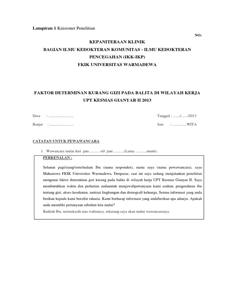 Kuesioner Gizi Kurang