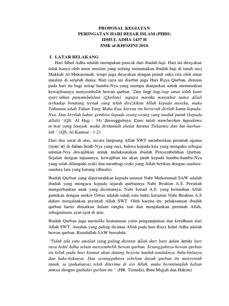 DOC) Proposal Kegiatan Idul Adha 1435 H ‘STMIK Mahakarya’ | Ahmad Jurnaidi Wahidin - Academia.edu