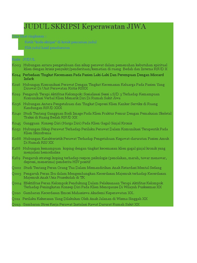 Judul Skripsi Keperawatan Jiwa 2014 - Ide Judul Skripsi Universitas