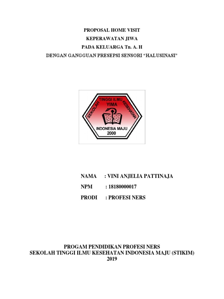 Proposal Home Visit Keperawatan Jiwa Pada Keluarga Tn. A. H Dengan Gangguan Presepsi Sensori “Halusinasi”