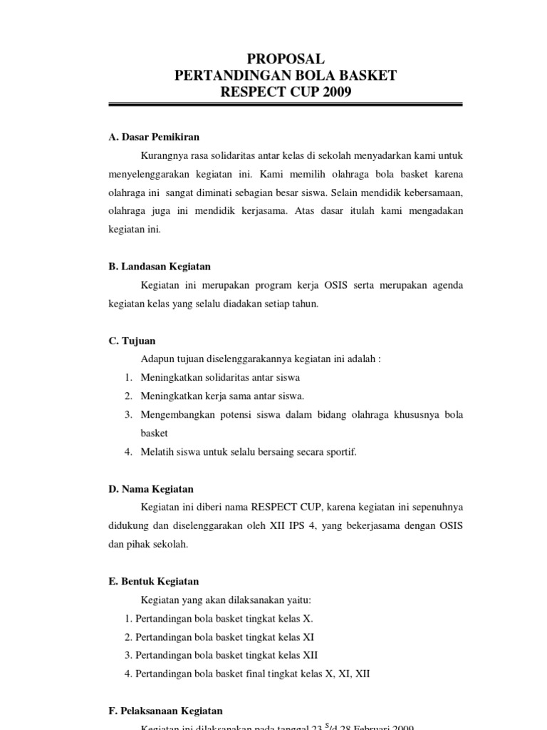 Contoh Proposal Kegiatan Bola Basket - Joonka