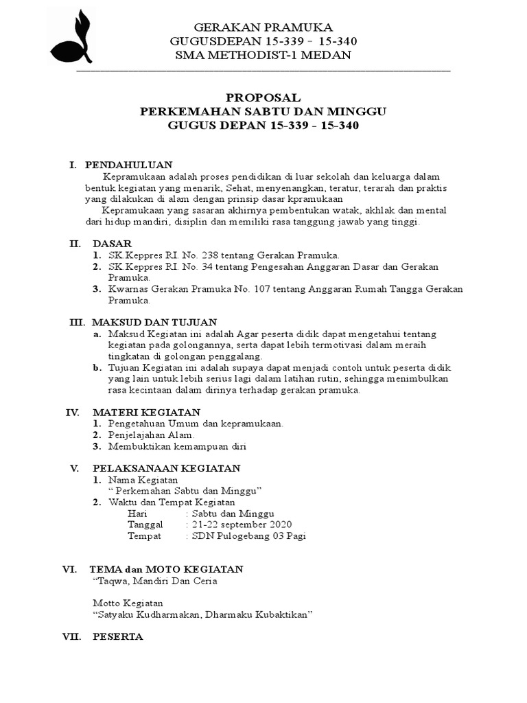 DOC) PROPOSAL PERKEMAHAN SABTU MINGGU | Ahmad Lutfi - Academia.edu