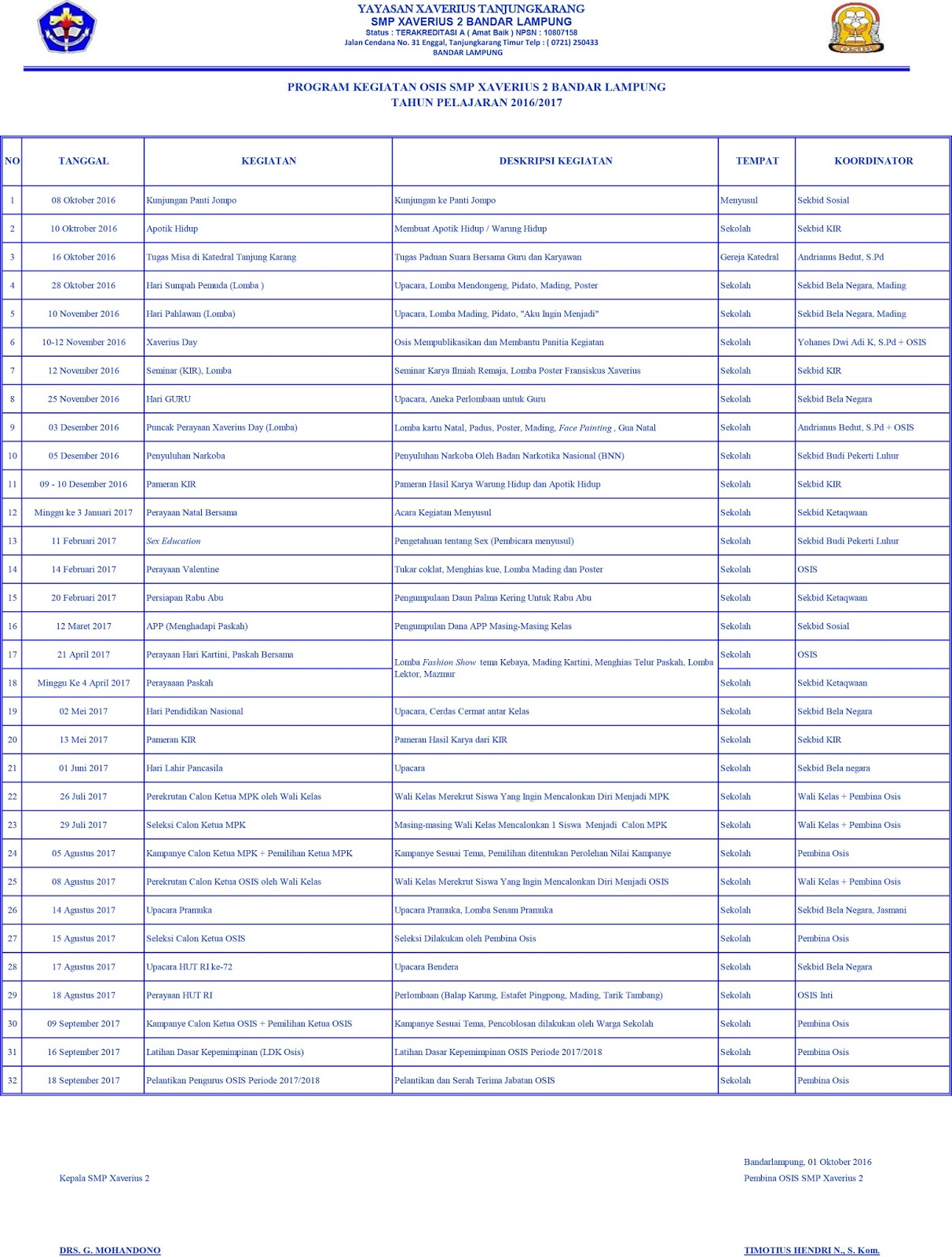 Program Kegiatan ~ OSIS SMP Xaverius 2 B.L