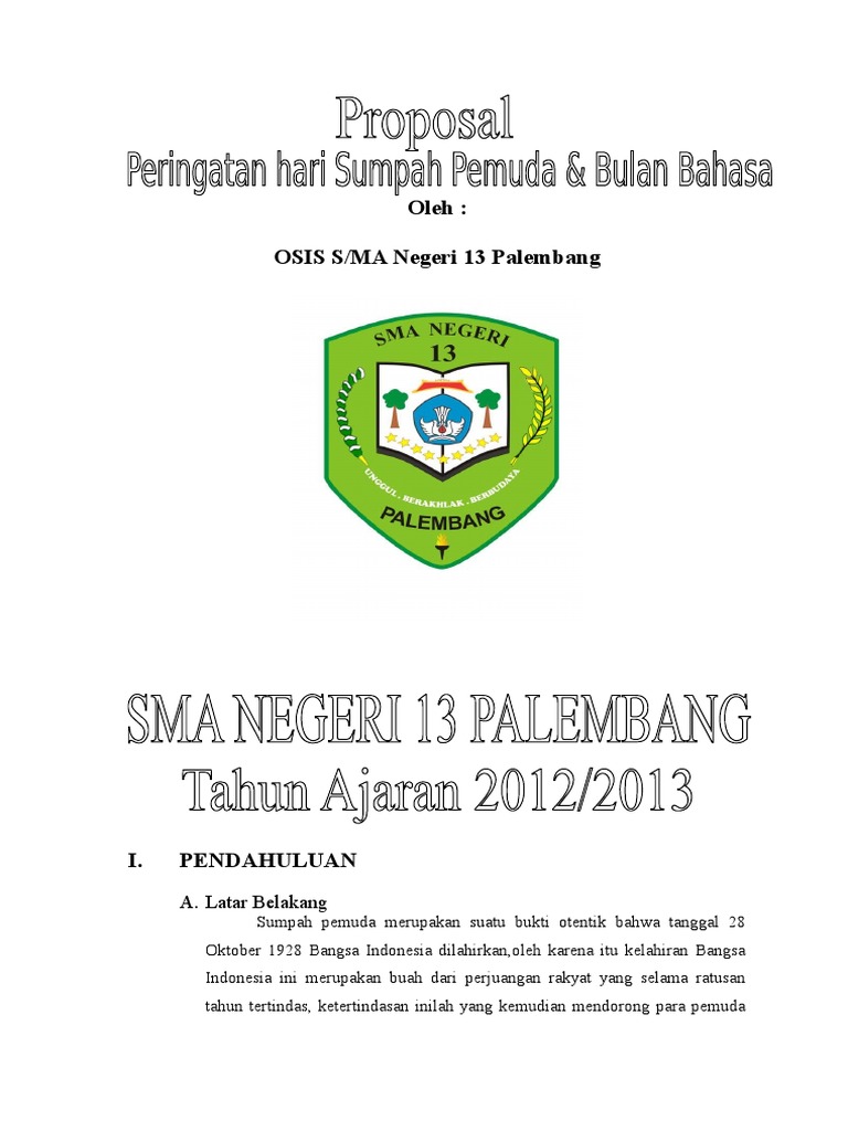 Contoh Proposal Kegiatan Hari Sumpah Pemuda Di Sekolah - Temukan Contoh