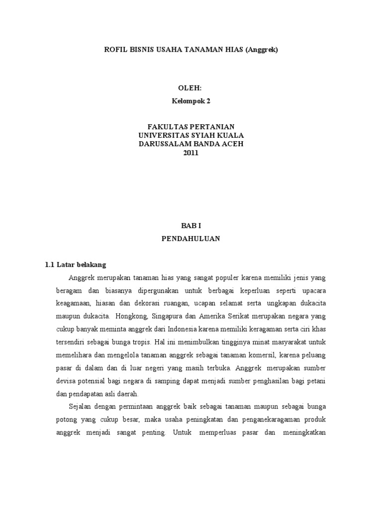 Contoh Proposal Usaha Tanaman Hias Anggrek | Download Contoh Skripsi Kebidanan