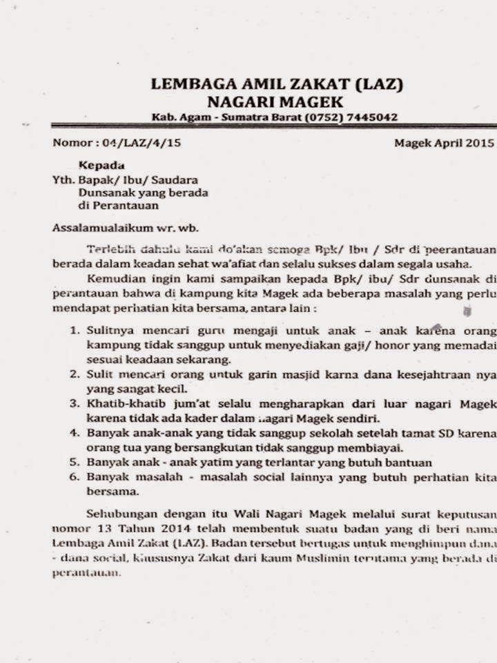 LEMBAGA AMIL ZAKAT NAGARI MAGEK: PROPOSAL LEMBAGA AMIL ZAKAT (LAZ) NAGARI MAGEK