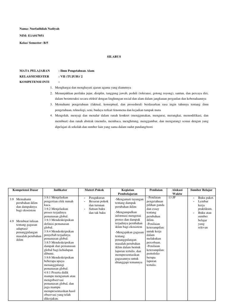 RPP Pemanasan Global Kelas VII