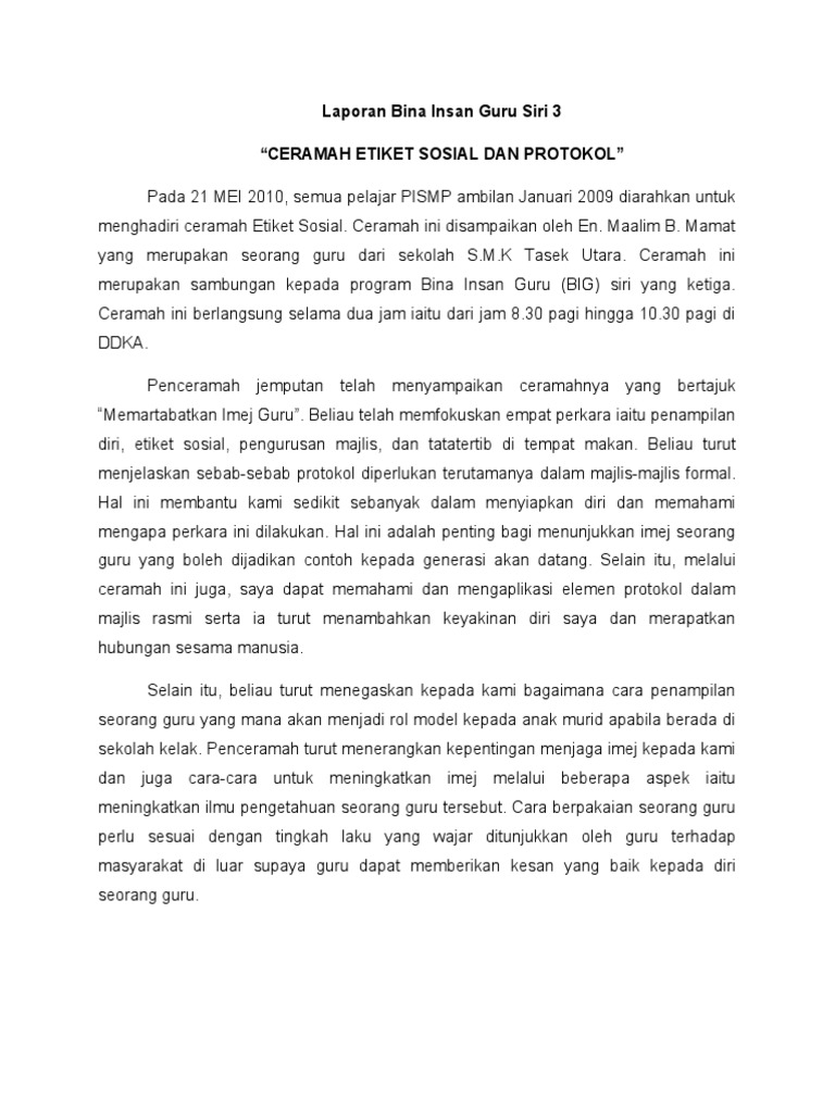 Ceramah Etiket Sosial Dan Protokol