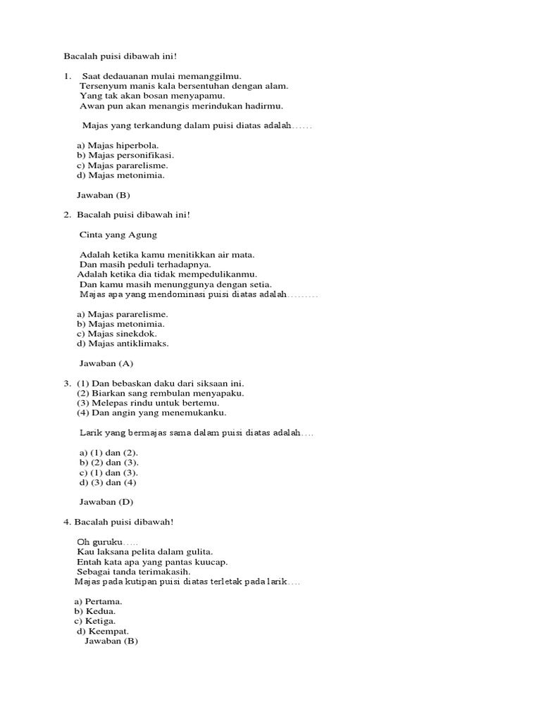 Jenis-jenis Gaya Bahasa Puisi :Majas dan Peribahasa | Salam …