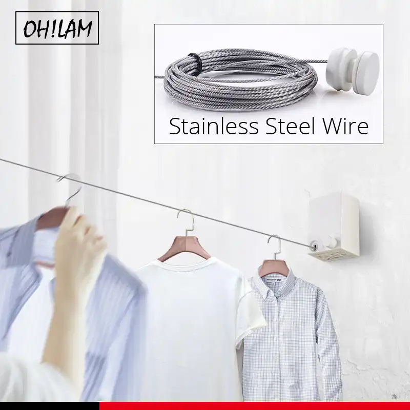 304 Stainless Steel Retractable Wall Mounted 3 M Mencuci Pakaian Pengeringan Line Rak Kain Tali Gantung Chrome Hotel Bintang 5 kualitas|Clotheslines| - AliExpress