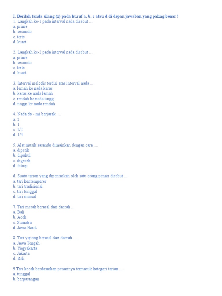 Soal dan Kunci Jawaban PAT Seni Budaya SMP Kelas 8 Kurikulum 2013 | Didno76.com