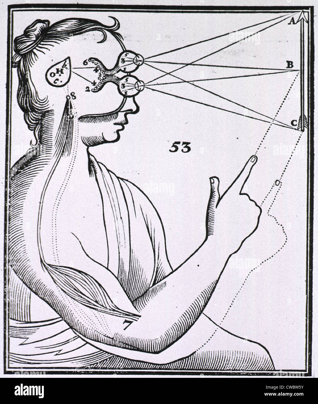 Une illustration montrant une théorie de la vision de René Descartes DE HOMINE (traité sur l’homme) 1677. Un profil humain, avec les yeux Photo Stock - Alamy