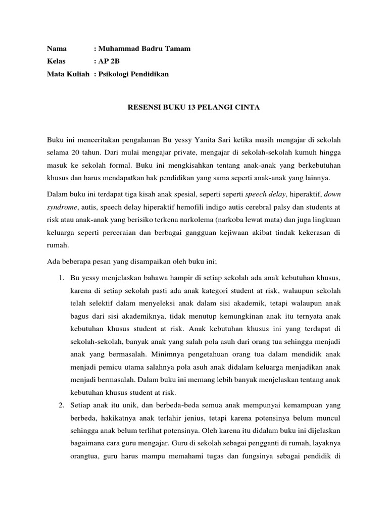 RESENSI BUKU: 13 PELANGI CINTA