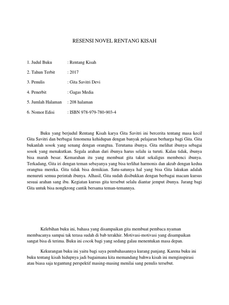 Tugas Bahasa Indonesia Resensi Novel “Rentang Kisah” Gita Savitri Devi - YouTube