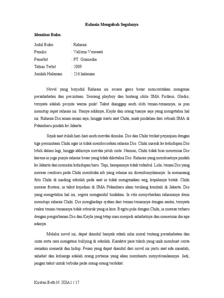Resensi Novel RAHASIA 2