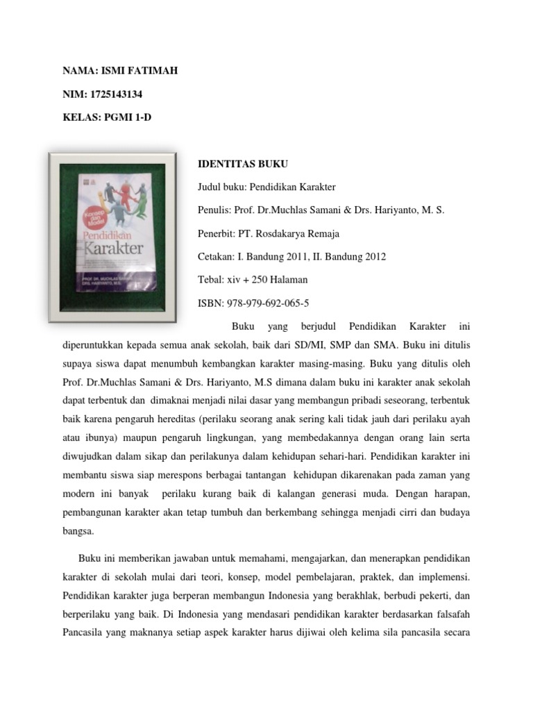 DOC) RESENSI BUKU PENDIDIKAN KARAKTER | Syifa Nuraini - Academia.edu