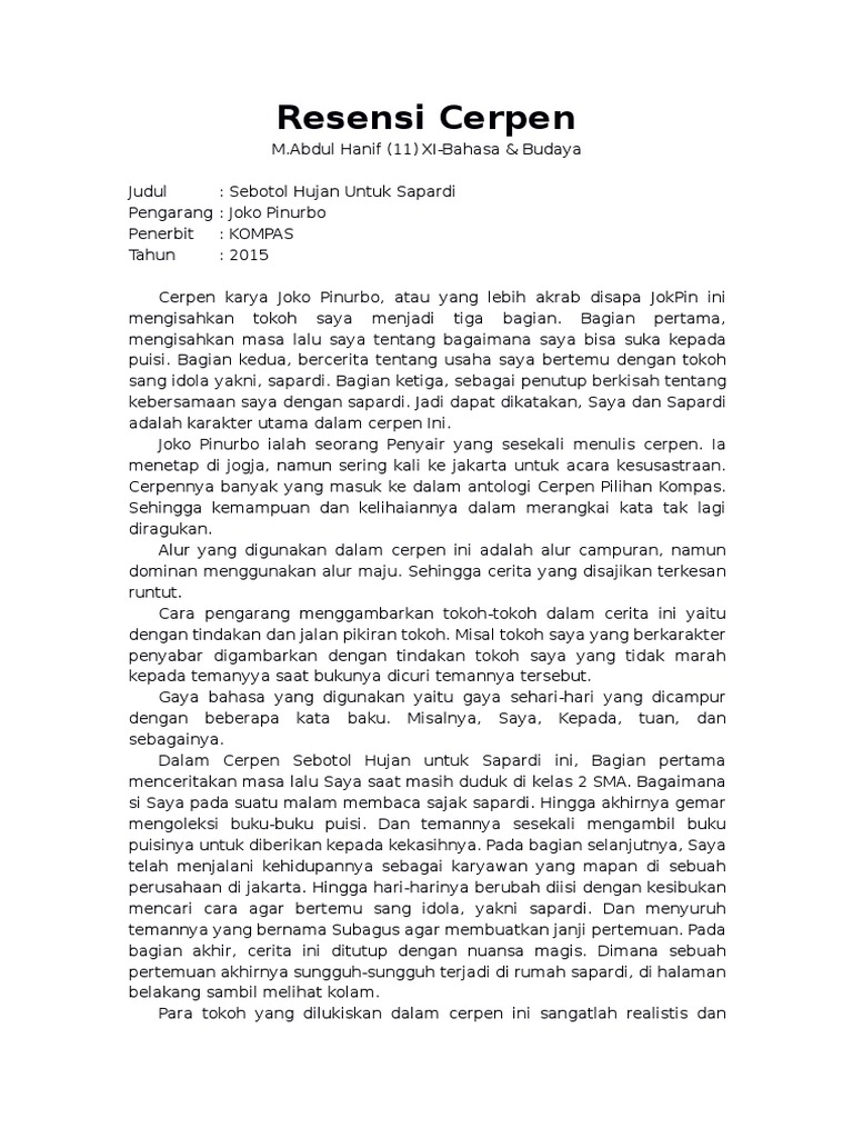 DOC) Contoh Resensi Cerpen | Dimitri Inzaghi - Academia.edu
