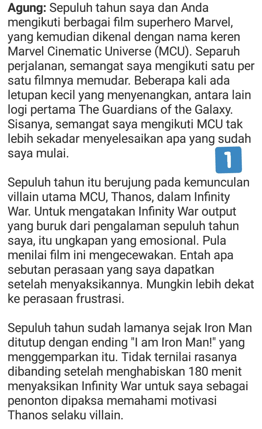 Agung Harsya on Twitter: “Tadi resensi pendek Avengers: Infinity War. Sekarang giliran yang agak panjang. (Karena menonton film adalah juga pengalaman individual yang reflektif, selera takkan pernah bisa disamaratakan. Hehe)… https://t.co/avgZM1xjrG”