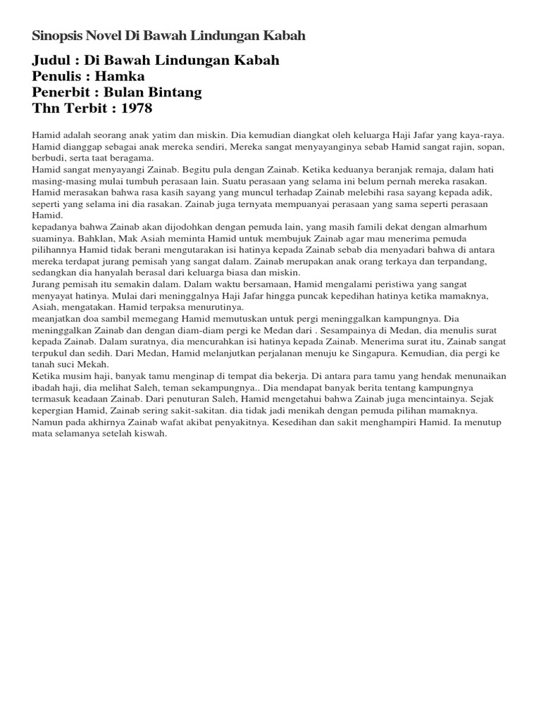 Sinopsis Novel Di Bawah Lindungan Kabah | rumpunsastra