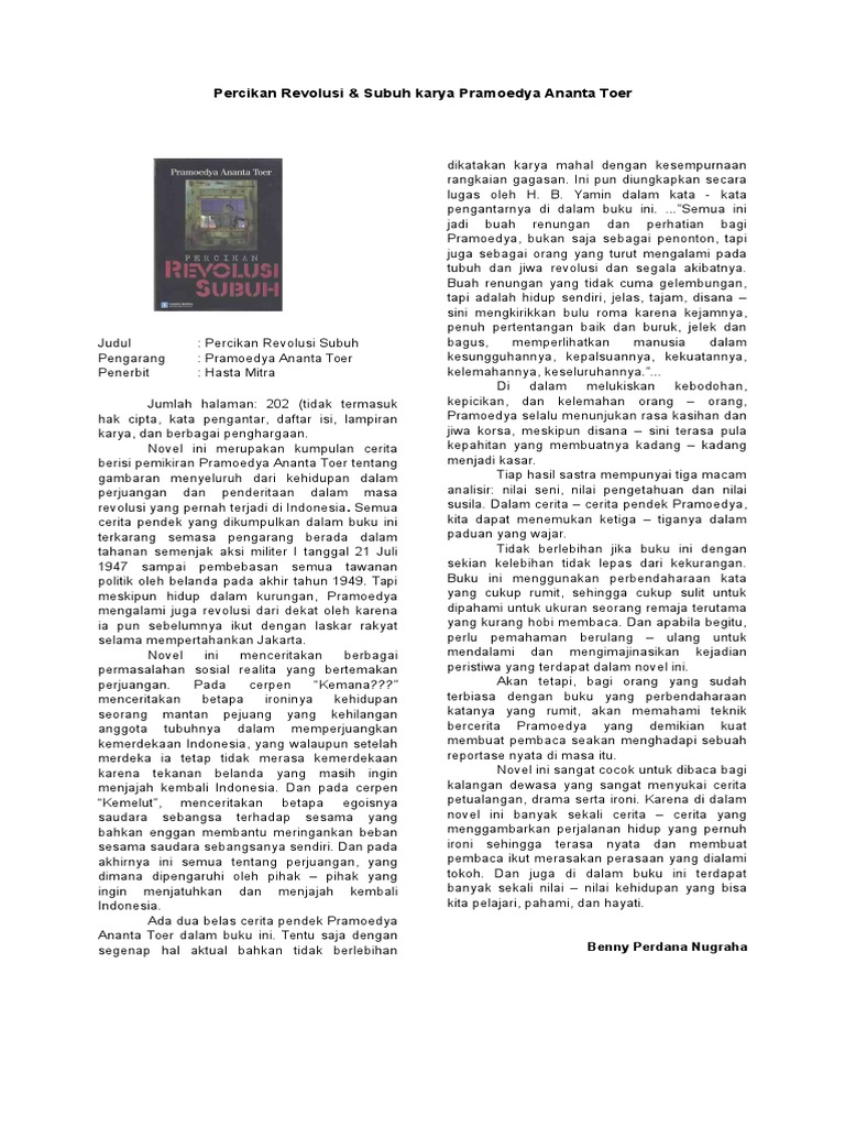 PDF) Resensi Novel Bumi Manusia.pdf | Bernadus Ade - Academia.edu
