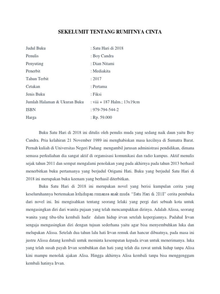 Resensi Novel Satu Hari Di 2018