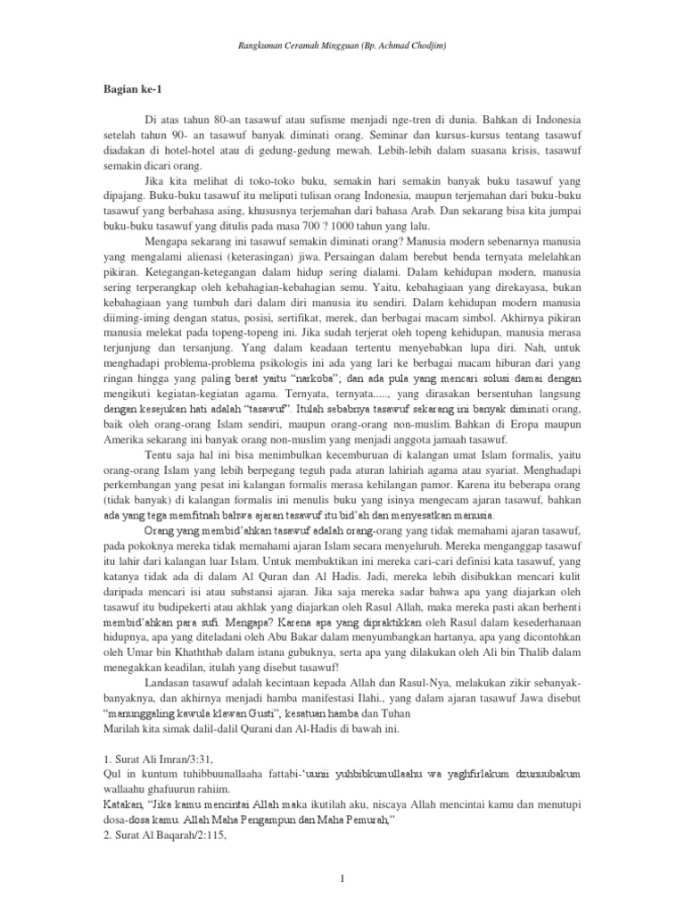 Rangkuman Ceramah Mingguan Bp. Achmad Chodjim