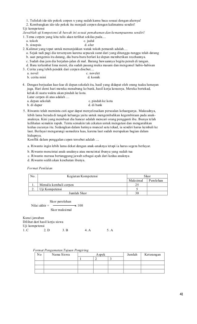 Contoh Soal Cerpen Dan Jawabannya - Peranti Guru