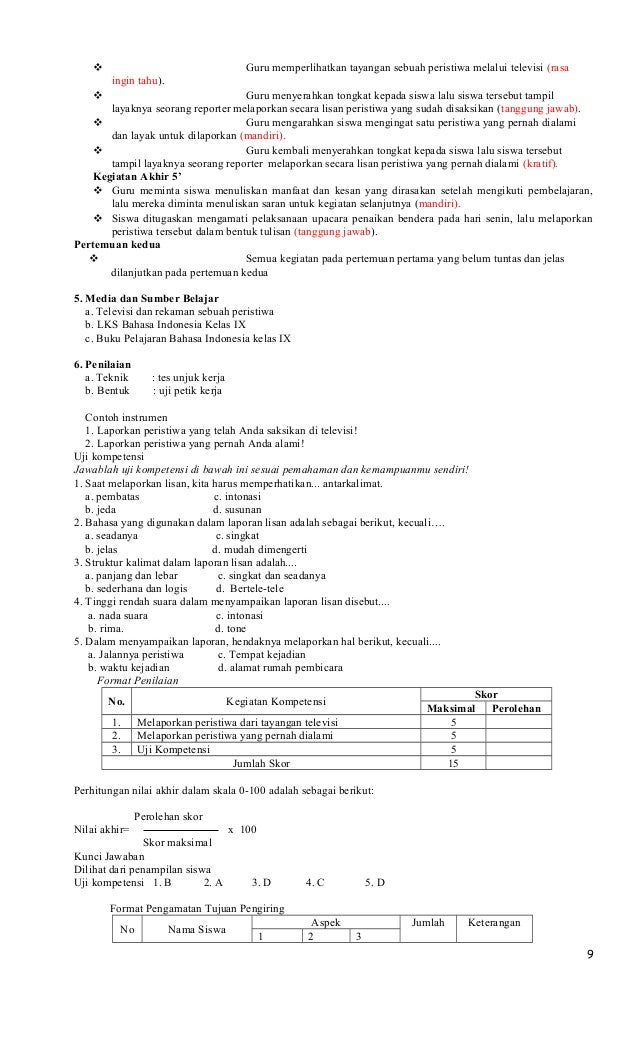 RPP BAHASA INDONESIA KELAS ix 9 – Kedai Guru Milenial