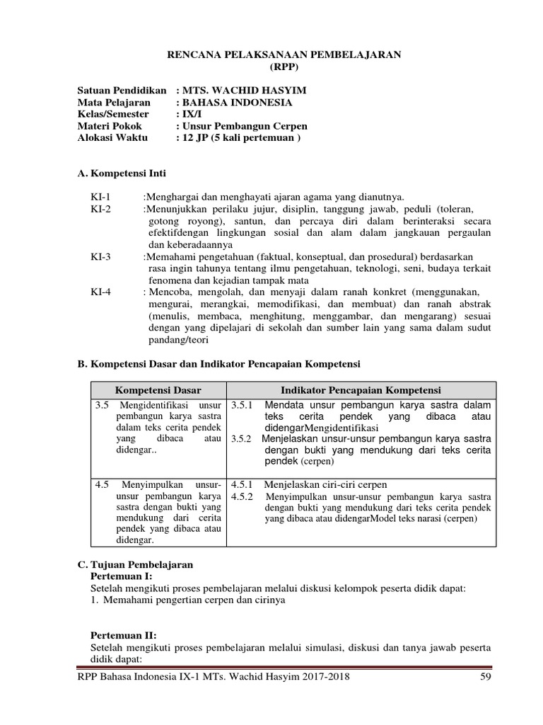 DOC) RPP BAHASA INDONESIA XI KURIKULUM 2013 CERPEN P1 | Dwi …