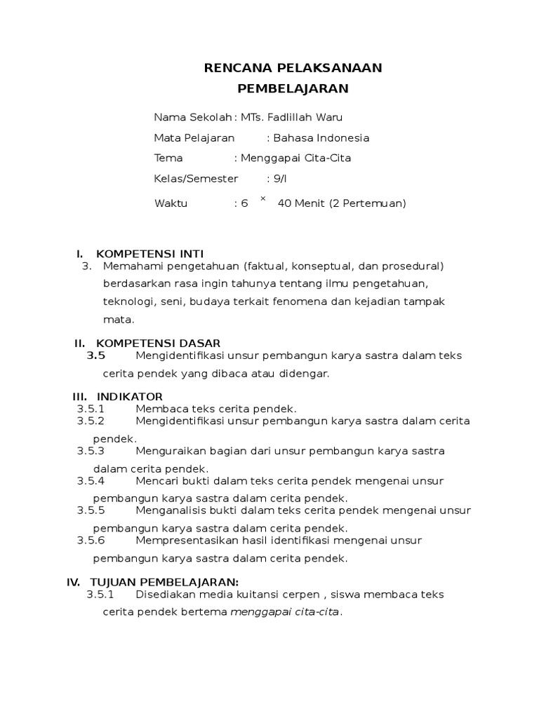 DOC) Rpp-bahasa-indonesia-xi-teks-cerpen | Fitri Fatma - Academia.edu