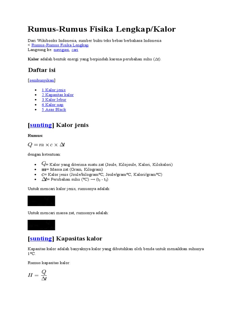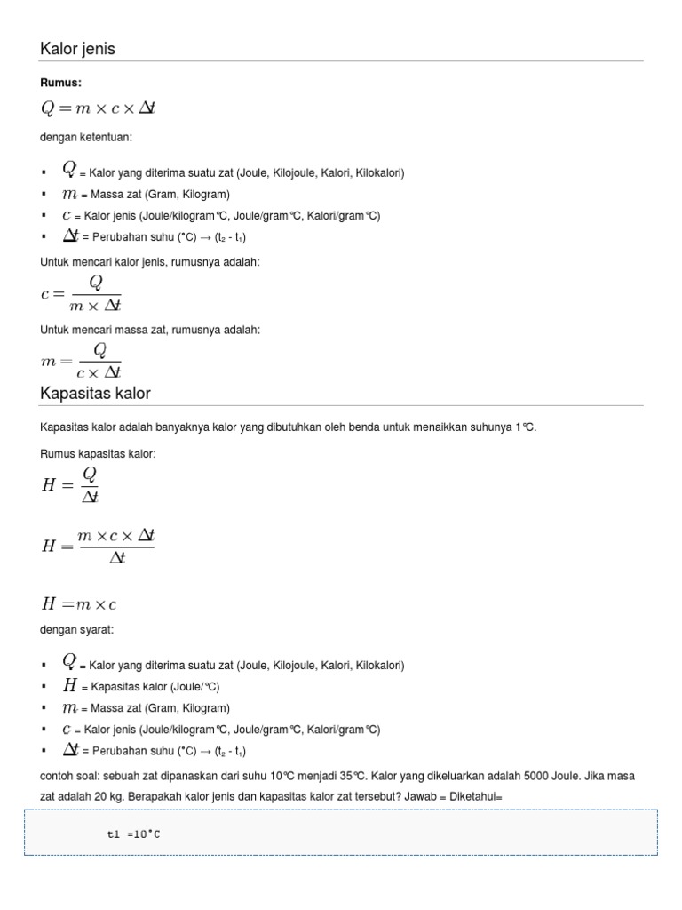 tuliskan rumus kalor lengkap dengan keteranganya - Brainly.co.id