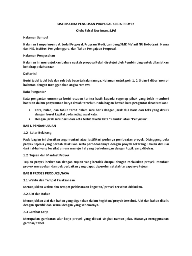 Sistematika Penulisan Proposal Kerja Proyek (Faisal Nur Iman. s,Pd)