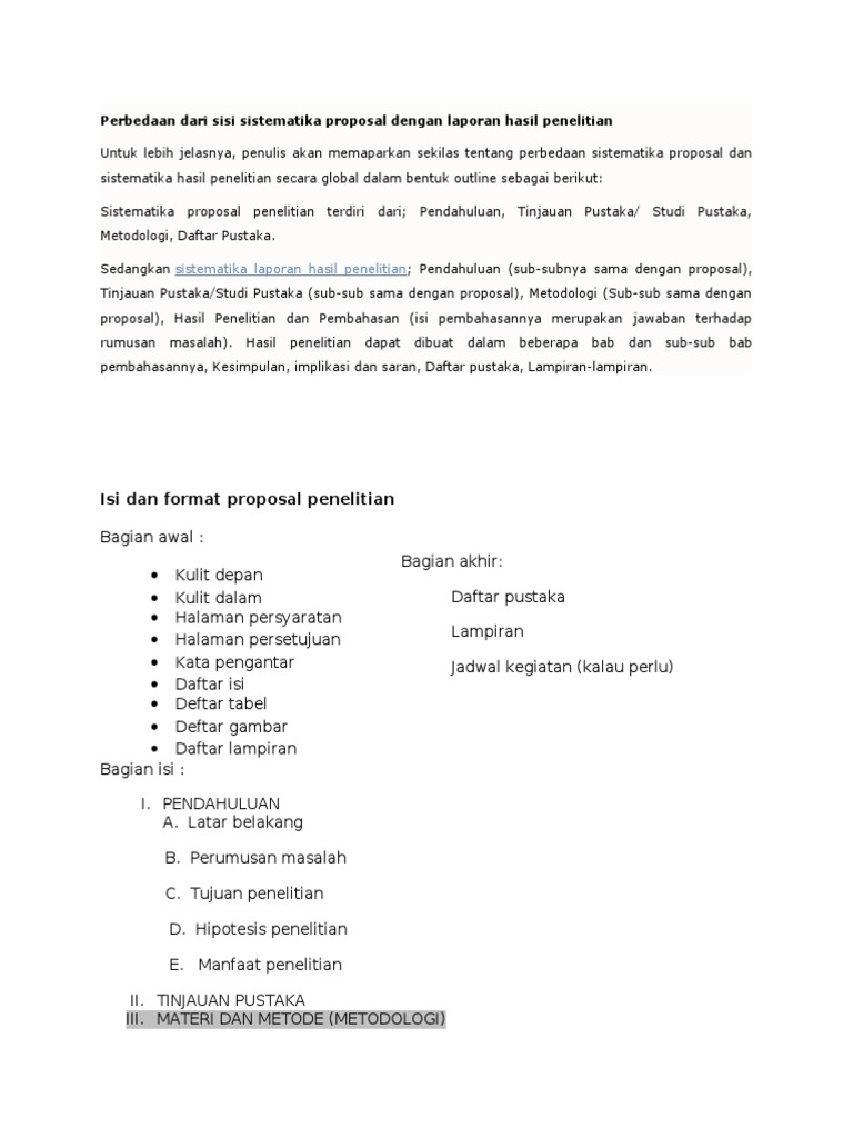Perbedaan Dari Sisi Sistematika Proposal Dengan Laporan Hasil Penelitian