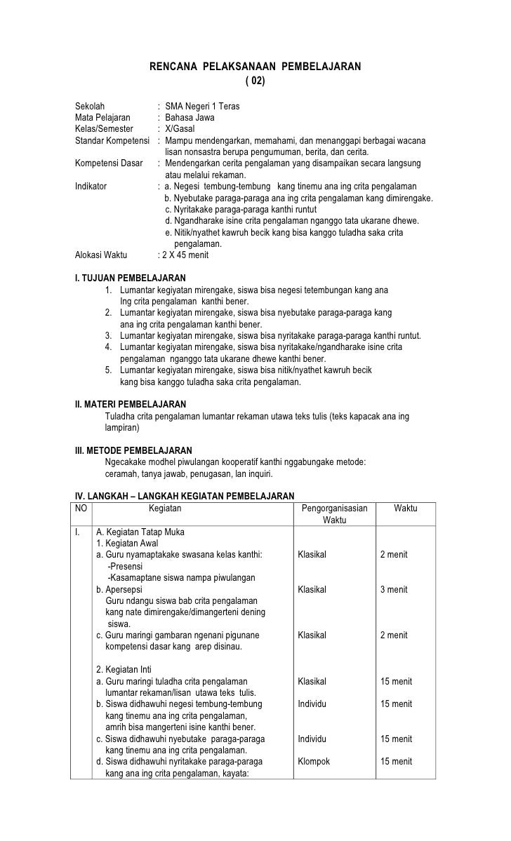 SILABUS - SUJARNO DWIJO SUSASTRO | Sinau .Web viewMemahami wacana lisan non sastra dalam kerangka