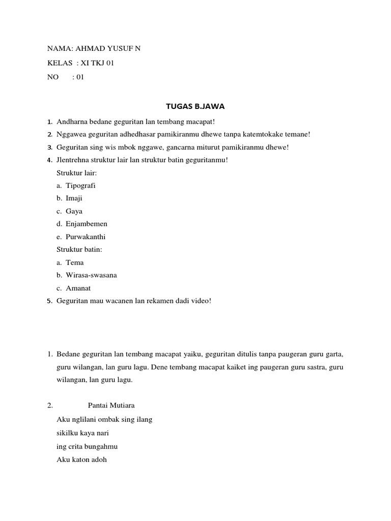 1. Jlentrehna struktur teks geguritan “bumiku” ing dhuwur kanti bukti ukara" sing nyengkuyung - Brainly.co.id