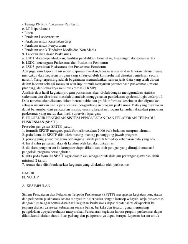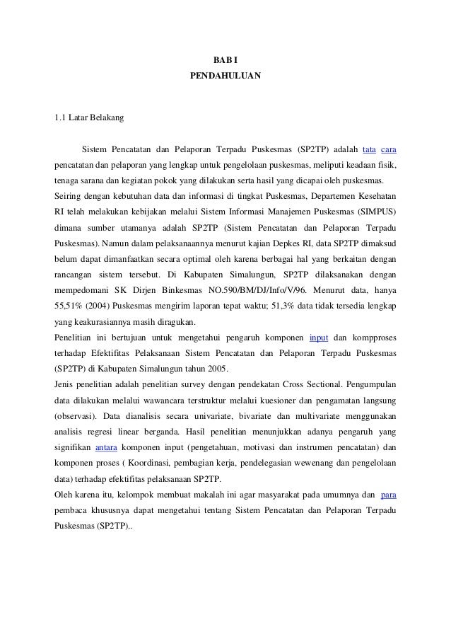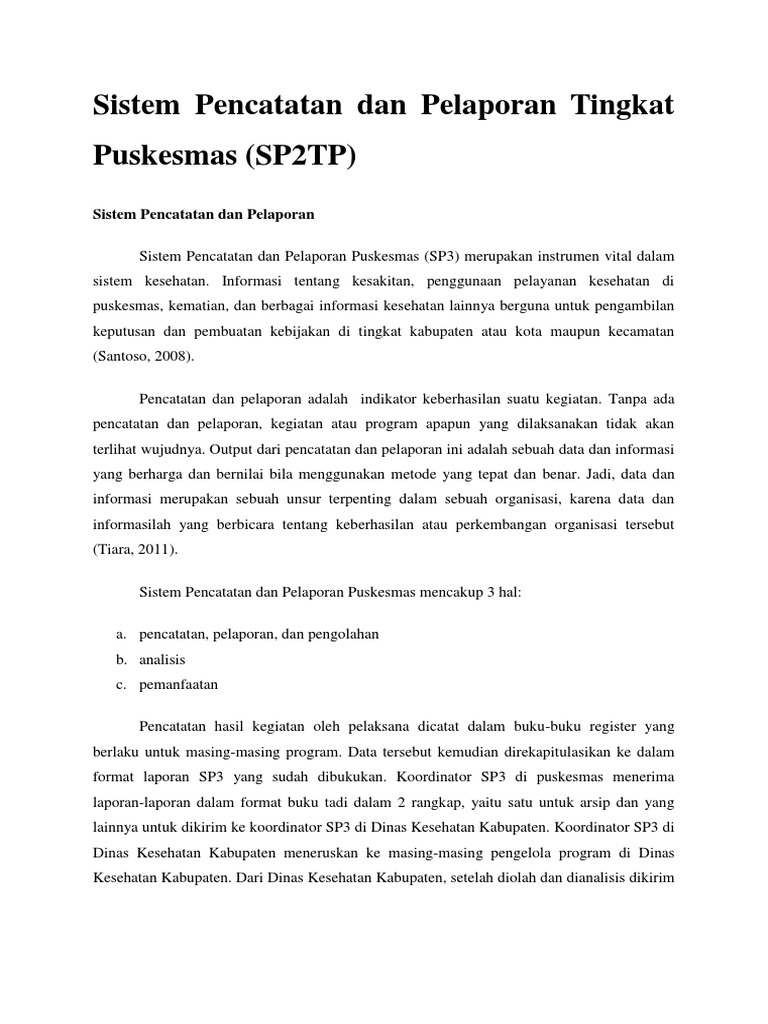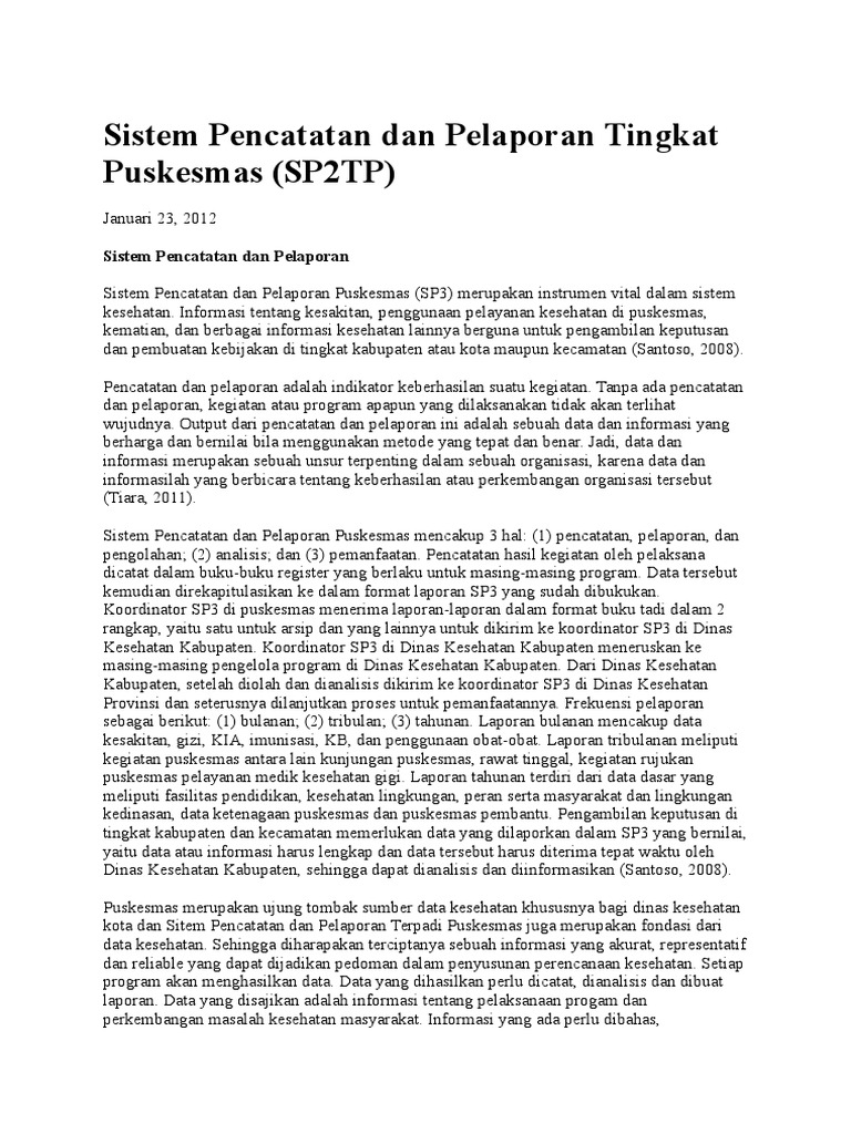 SISTEM PENCATATAN DAN PELAPORAN TERPADU PUSKESMAS ( SP2TP ) Dr. H. Fahrurazi, M. Kes - PDF Free Download
