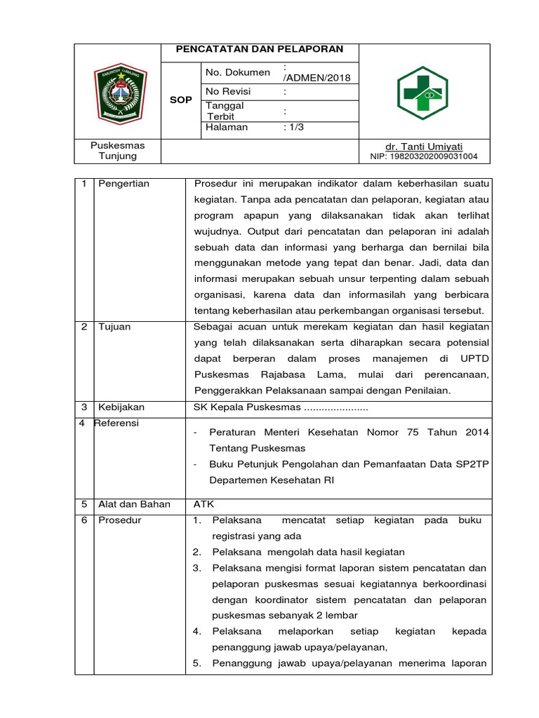 e.p. 2.3.7 Sop Pencatatan Dan Pelaporan(Sp2tp)