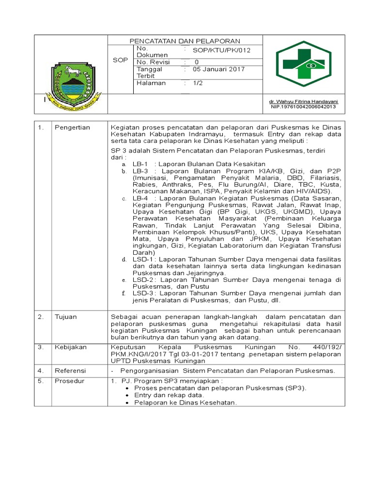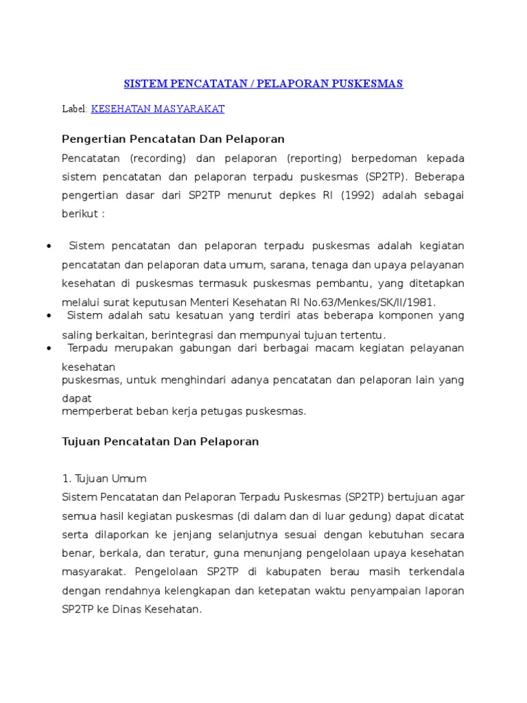 SISTEM PENCATATAN DAN PELAPORAN PUSKESMAS - PDF Free Download