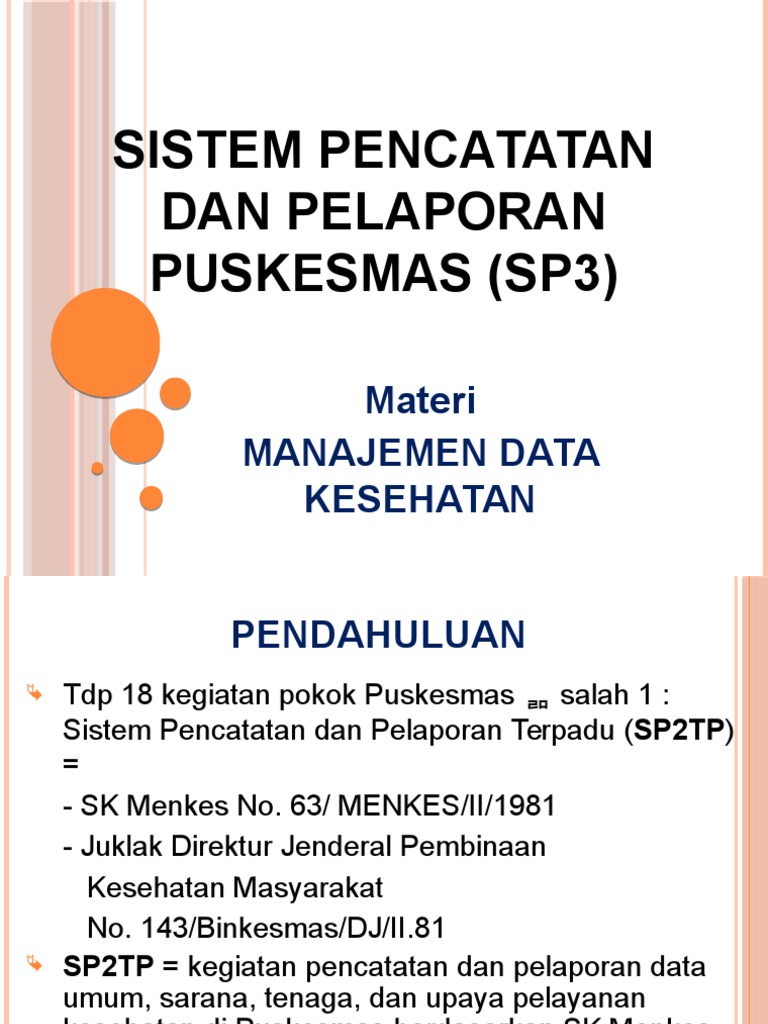 SISTEM PENCATATAN DAN PELAPORAN PUSKESMAS (SP3) - ppt download