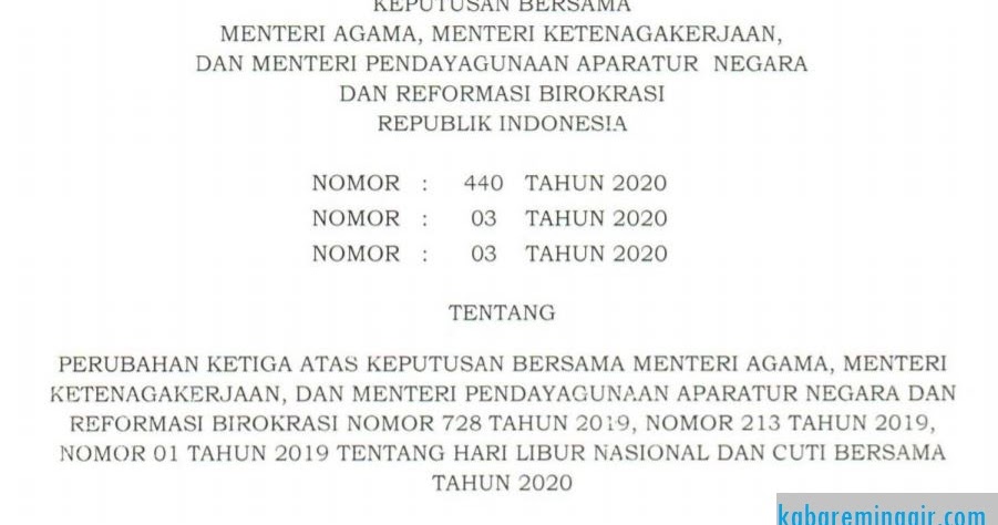 SKB Perubahan Kedua Libur Nasional dan Cuti Bersama 2020 …