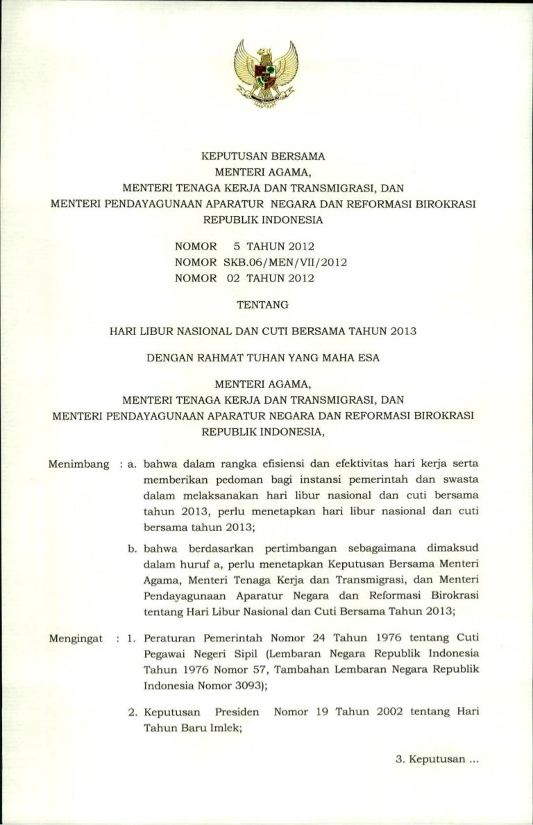Skb 3 menteri tentang hari libur nasional dan cuti bersama 2013