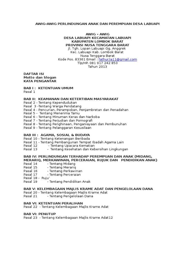 Awig-Awig Perlindungan Anak Dan Perempuan Desa Labuapi NTB