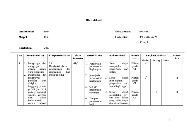 Kisi Dan Kartu Soal Uas Kelas 7