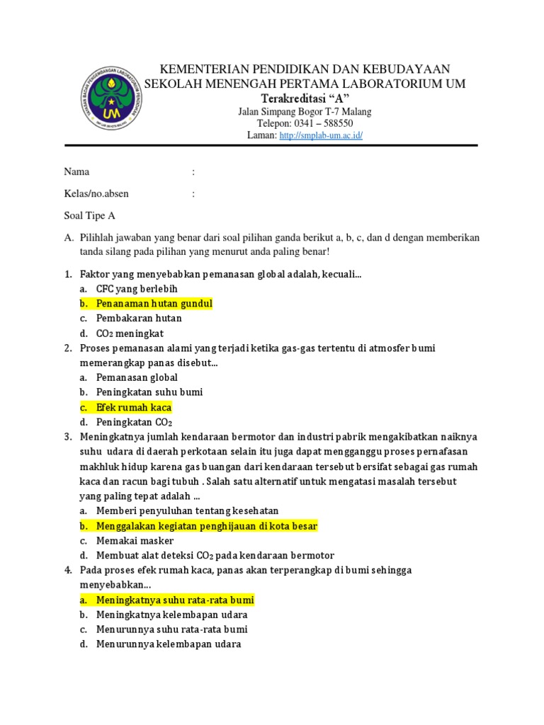 Soal IPA Smp Pemanasan Global